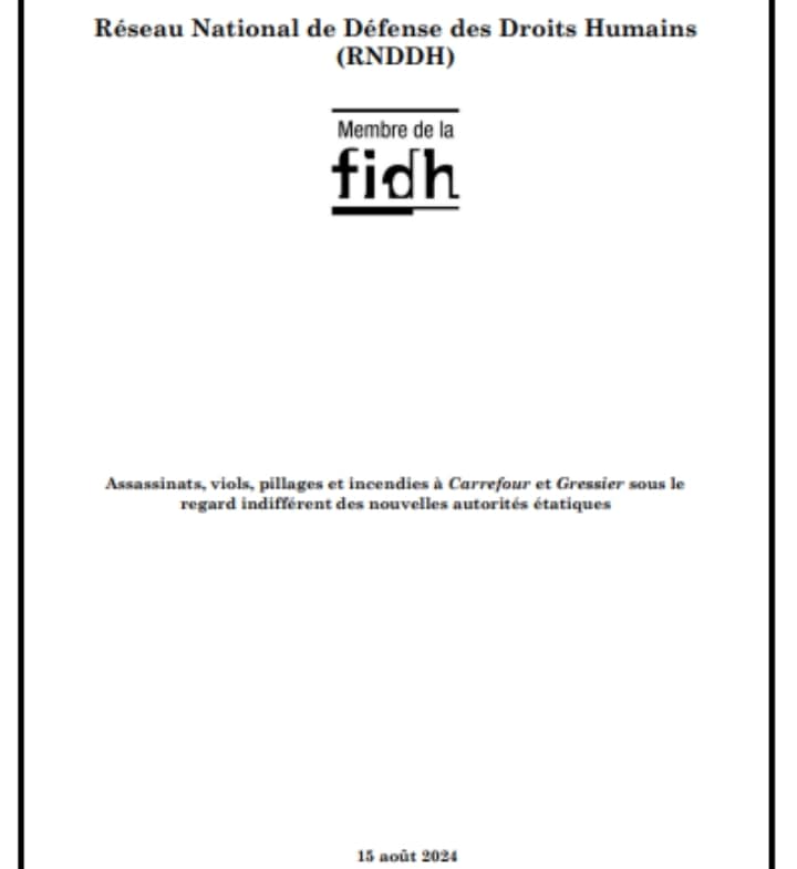 Dans un rapport en date du 16 août 2024, le Réseau national de défense des droits humains (RNDDH) appelle à une intervention rapide et décisive de l'État pour mettre fin à la violence incontrôlée qui ravage Carrefour et Gressier.